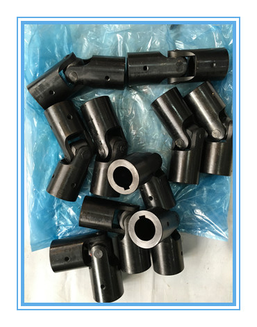 WS,WSD型十字軸式萬向聯(lián)軸器利用其結(jié)構(gòu)的特點(diǎn)能使不在同一軸線或軸線折角較大或軸向移動(dòng)較大的兩軸等角速連續(xù)回轉(zhuǎn),并可靠地傳遞轉(zhuǎn)矩和運(yùn)動(dòng)。能廣泛應(yīng)用于冶金、起重、工程運(yùn)輸、礦山、石油、船舶、煤炭、橡膠、造紙機(jī)械及其它重機(jī)行業(yè)的機(jī)械軸系中傳遞轉(zhuǎn)矩。主要用于傳遞運(yùn)動(dòng)和小轉(zhuǎn)矩,適用于聯(lián)接兩軸軸線夾角β≤45°的傳動(dòng)軸系;傳遞公稱轉(zhuǎn)矩11.2~1120N·m。 十字軸式萬向聯(lián)軸器的優(yōu)點(diǎn)及計(jì)算轉(zhuǎn)矩: 十字軸式萬向聯(lián)軸器,這種聯(lián)軸器可以允許兩軸間有較大的夾角(夾角α****可達(dá)35°~45°),而且在機(jī)器運(yùn)轉(zhuǎn)時(shí),夾角發(fā)生改變?nèi)钥烧鲃?dòng);但當(dāng)α過大時(shí),傳動(dòng)效率會(huì)顯著降低。這種聯(lián)軸器的缺點(diǎn)是:當(dāng)主動(dòng)軸角速度ω1α為常數(shù)時(shí),從動(dòng)軸的角速度ω3并不是常數(shù),而是在一定范圍內(nèi)(ω1cosα≤ω3≤ω1/cosα)變化,因而在傳動(dòng)中將產(chǎn)生附加動(dòng)載荷。為了改善這種情況,常將十字軸式萬向聯(lián)軸器成對(duì)使用,但應(yīng)注意安裝時(shí)必須保證Ol軸、O3軸與中間軸之間的夾角相等,并且中間軸的兩端的叉形接頭應(yīng)在同一平面內(nèi)。只有這種雙萬向聯(lián)軸器才可以得到ω1=ω3。 小型萬向聯(lián)軸器用來傳遞不在同一條軸線上的運(yùn)動(dòng),有單型(WSD)、雙型(WS)、可伸縮型(WSS)、矯正機(jī)用(WHL、WSL);材料有45#鋼、40Cr、不銹鋼等;表面可作發(fā)黑、鍍鎳、鍍鋅等處理。 WSD小型萬向節(jié)聯(lián)軸器的材料:WSD十字軸采用了合金鋼(40Cr、40CrNi、20CrMo、20CrMnVB)制造,熱處理后硬度58~62HRC,其他個(gè) 零件均采用35或45鋼制造并經(jīng)熱處理48~52 HRC 。WSD聯(lián)軸器兩端連接形式:兩端采用相同孔形時(shí),有圓柱孔、帶鍵槽圓柱孔 、四方形孔;兩端采用不同孔形時(shí),有圓柱孔與帶鍵槽圓柱孔、有圓柱孔與四方形孔、帶鍵槽圓柱孔與與四方形孔等三種.