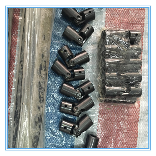 WS,WSD型十字軸式萬向聯(lián)軸器利用其結(jié)構(gòu)的特點能使不在同一軸線或軸線折角較大或軸向移動較大的兩軸等角速連續(xù)回轉(zhuǎn),并可靠地傳遞轉(zhuǎn)矩和運動。能廣泛應(yīng)用于冶金、起重、工程運輸、礦山、石油、船舶、煤炭、橡膠、造紙機械及其它重機行業(yè)的機械軸系中傳遞轉(zhuǎn)矩。主要用于傳遞運動和小轉(zhuǎn)矩,適用于聯(lián)接兩軸軸線夾角β≤45°的傳動軸系;傳遞公稱轉(zhuǎn)矩11.2~1120N·m。 十字軸式萬向聯(lián)軸器的優(yōu)點及計算轉(zhuǎn)矩: 十字軸式萬向聯(lián)軸器,這種聯(lián)軸器可以允許兩軸間有較大的夾角(夾角α****可達35°~45°),而且在機器運轉(zhuǎn)時,夾角發(fā)生改變?nèi)钥烧鲃;但當α過大時,傳動效率會顯著降低。這種聯(lián)軸器的缺點是:當主動軸角速度ω1α為常數(shù)時,從動軸的角速度ω3并不是常數(shù),而是在一定范圍內(nèi)(ω1cosα≤ω3≤ω1/cosα)變化,因而在傳動中將產(chǎn)生附加動載荷。為了改善這種情況,常將十字軸式萬向聯(lián)軸器成對使用,但應(yīng)注意安裝時必須保證Ol軸、O3軸與中間軸之間的夾角相等,并且中間軸的兩端的叉形接頭應(yīng)在同一平面內(nèi)。只有這種雙萬向聯(lián)軸器才可以得到ω1=ω3。 小型萬向聯(lián)軸器用來傳遞不在同一條軸線上的運動,有單型(WSD)、雙型(WS)、可伸縮型(WSS)、矯正機用(WHL、WSL);材料有45#鋼、40Cr、不銹鋼等;表面可作發(fā)黑、鍍鎳、鍍鋅等處理。 WSD小型萬向節(jié)聯(lián)軸器的材料:WSD十字軸采用了合金鋼(40Cr、40CrNi、20CrMo、20CrMnVB)制造,熱處理后硬度58~62HRC,其他個 零件均采用35或45鋼制造并經(jīng)熱處理48~52 HRC 。WSD聯(lián)軸器兩端連接形式:兩端采用相同孔形時,有圓柱孔、帶鍵槽圓柱孔 、四方形孔;兩端采用不同孔形時,有圓柱孔與帶鍵槽圓柱孔、有圓柱孔與四方形孔、帶鍵槽圓柱孔與與四方形孔等三種.