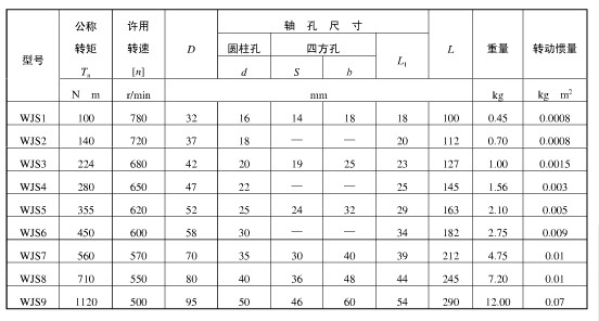 WJS 型雙球鉸式萬(wàn)向聯(lián)軸器的型式、基本參數(shù)和主要尺寸